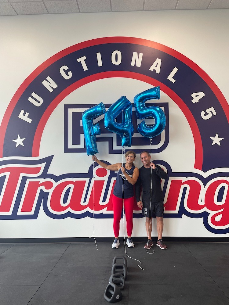 First time Christine ever lifted weights was her first F45 class. Now down >50 lbs and never felt stronger!